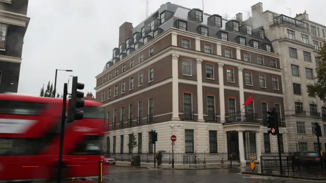 圖像來源,REUTERS圖像加注文字,倫敦波特蘭中國英國大使館現址——從清朝租用至今的這個地點是孫中山《倫敦蒙難記》擄人風波真實發生的場所。
