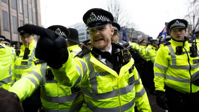 圖像來源,REUTERS圖像加注文字,警方此前表達了對中國大使館新館外容易出現示威的擔憂。