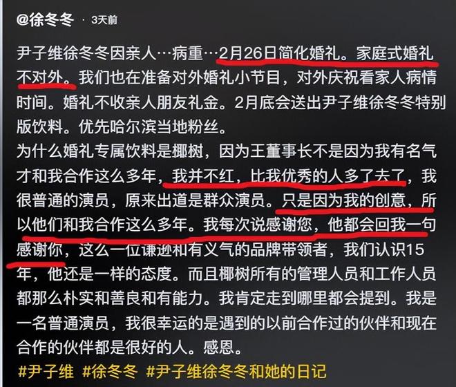 近日,徐冬冬在個人賬號接連發聲支持椰樹品牌。