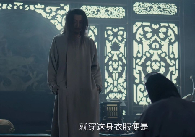 黄沙漫天,石重贵发丝凌乱、简衣粗布,氛围极其悲壮。