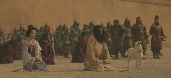 于是戏里,他牵着羊,带着家人与文官们,在契丹方面前下跪投降。