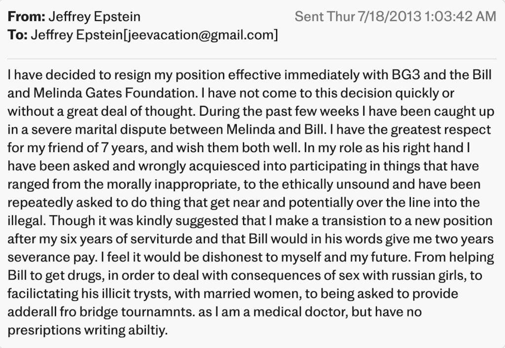 美国司法部公布的最新文件显示,富豪淫媒爱泼斯坦(Jeffrey Epstein)声称,微软创办人比尔·盖兹(Bill Gates)曾与「俄罗斯女孩」发生性关系后感染性病。爱泼斯坦还声称,盖兹曾向他索取抗生素,以便「偷偷给」他当时的妻子梅琳达(Melinda Gates)服用。两人现已离婚