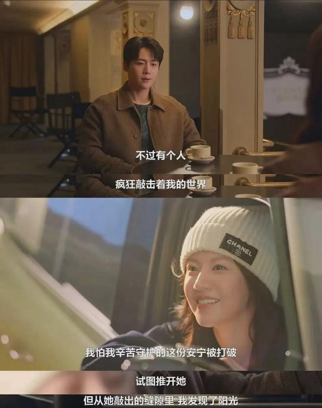 可即便是擅长回避和整理的周浩镇,也没有办法忘掉那些美好的时光:他们曾在意大利深夜街头饮酒到天明、他们在加拿大积攒了无数幸运看到的极光下、他们在自制瀑布前的深情一吻、他们瞒住所有人每晚私下的约会、她总是挂在嘴边的笑、她难过时皱的眉、她在第二人格时称呼他的那句“亲爱的”……他们在爱里all in,所以在转身离开时怎么可能坦然。