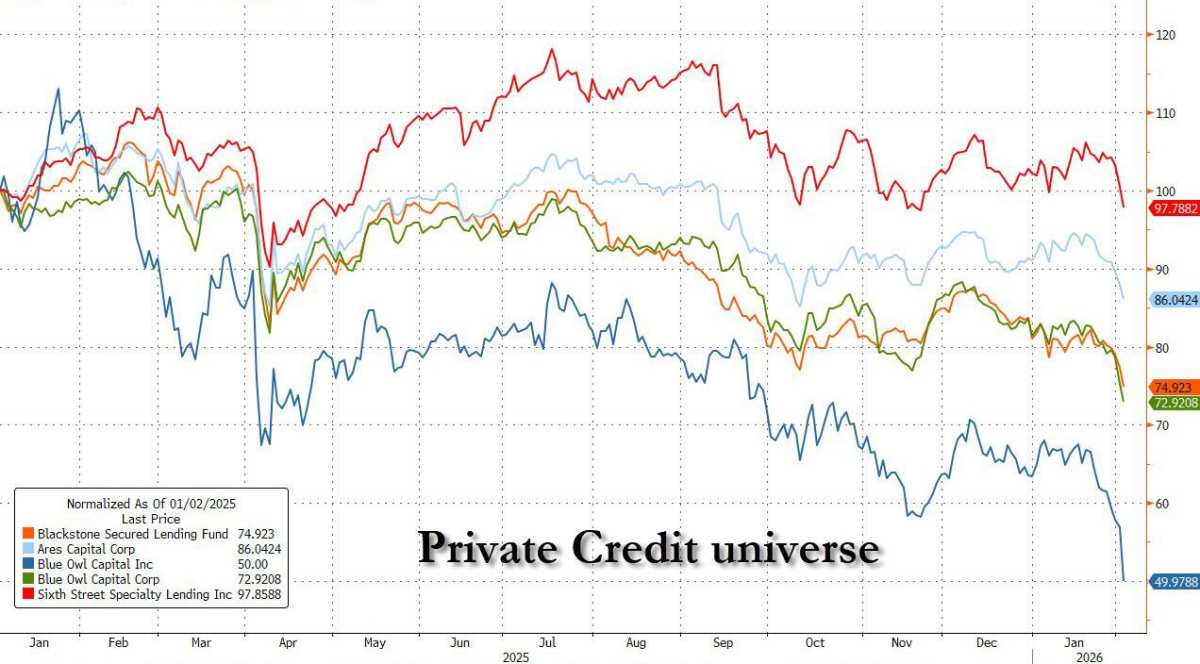 恐慌情緒還蔓延至軟件業務開發公司(BDC),包括$Blue Owl Capital (OWL.US)$在內的BDC股票走低,因市場對這類持有大量軟件行業敞口的公司擔憂加劇。媒體指出,此類行業動蕩的擔憂已在全球范圍內引發信貸市場震蕩,導致上周廣泛參與軟件公司銀團貸款市場的貸款價格下跌。