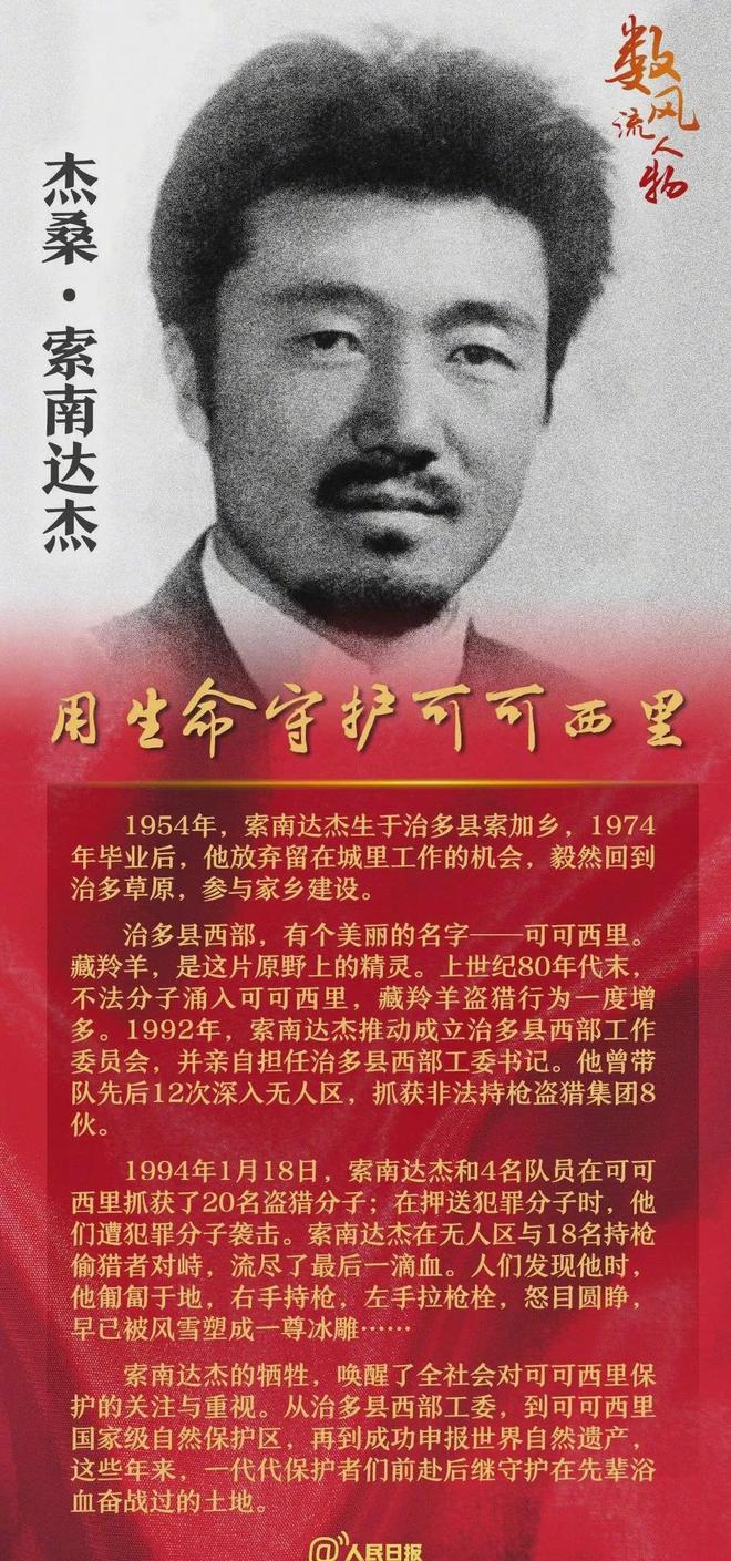 可可西裡平均海拔4600多米,被稱為生命禁區,常年刮著狂風,氣溫低到零下幾十度,巡山隊員們常常要餓著肚子、頂著風雪,在荒原上奔波數日。可索南達傑從沒有退縮過,他帶隊巡山,遇到盜獵者從不手軟,哪怕對方人多勢眾、裝備精良,他也從未有過一絲畏懼。