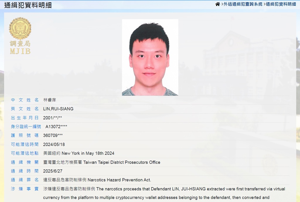 台大资管系毕业生林睿庠涉嫌在暗网贩卖价值逾1.05亿美元毒品,美国法官3日宣判林睿庠30年有期徒刑。(图/中时资料照、调查局提供)