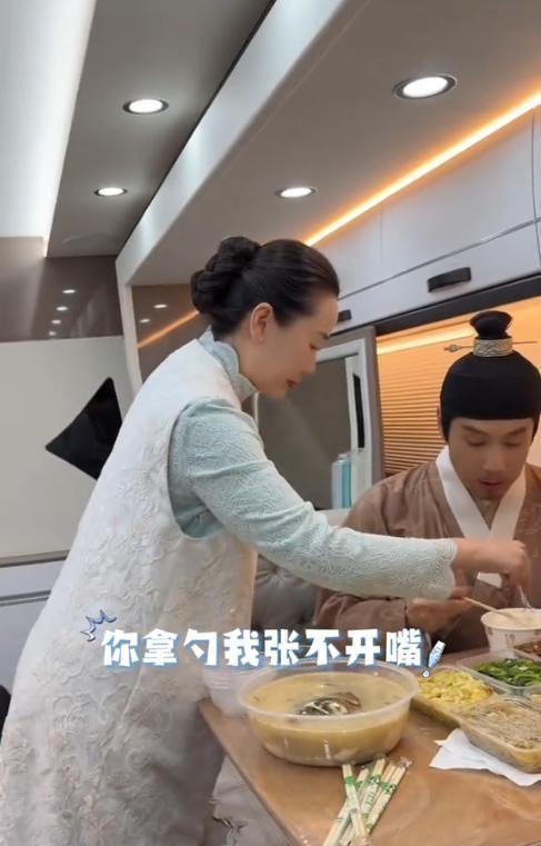 林依轮拍戏,西华来探班,中午点八菜一汤,夫妻俩相处看着像母子