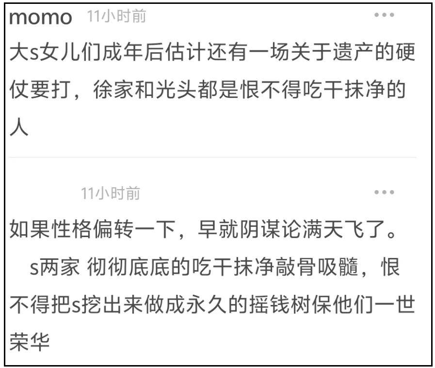 ——真正有效的回应,不是应该晒出把大S遗产交接给大S子女的证据吗?哪怕几张照片、几条聊天记录,小S几句话都含糊过去了,难道要等大S孩子长大之后,才会有真相吗?
