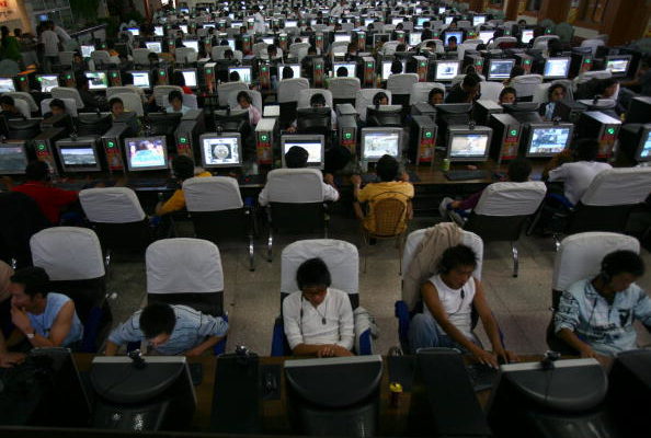 西藏拉薩的網吧。 (China Photos/Getty Images 2006-8-30)