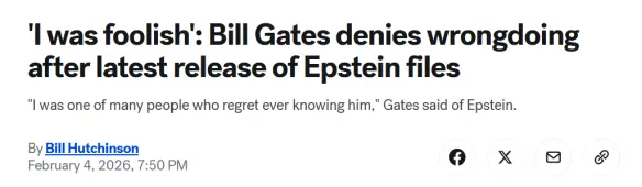 在司法部公開的超過 300 萬頁愛潑斯坦調查材料中,裡面包含一些關於比爾.蓋茨私生活的駭人描述,比如他“與俄羅斯女孩有染並感染性傳播疾病”、“試圖暗中為當時的妻子使用抗生素”等細節,這些內容一度在社交媒體和頭條新聞中炸開了鍋。
