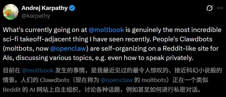 注:OpenClaw大部分帖子和账号已被辟谣是人类造假