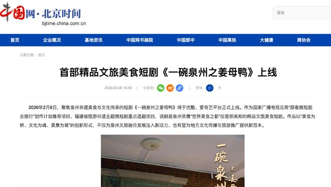 近日,泉州荣膺“世界美食之都”后首部精品文旅美食短剧《一碗泉州之姜母鸭》正式上线。剧集凭借鲜活的本土故事、浓郁的非遗风味和暖心的市井情怀,引发福建及中央各级官方媒体集中关注与报道。中新社、中国网、东南网、福建日报、学习强国、泉州晚报、东南早报等权威媒体和平台纷纷刊发新闻内容,泉州发布、海丝泉州文旅之声等官方新媒体同步推送,形成线上线下联动、传统媒体与新媒体共振的传播热潮。