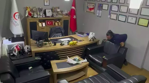 CCTV footage shows Ilyas Yildir eating in his office when he begins… pic.twitter.com/3InygIpXQY— GDN Online (@GDNonline) February 11, 2026