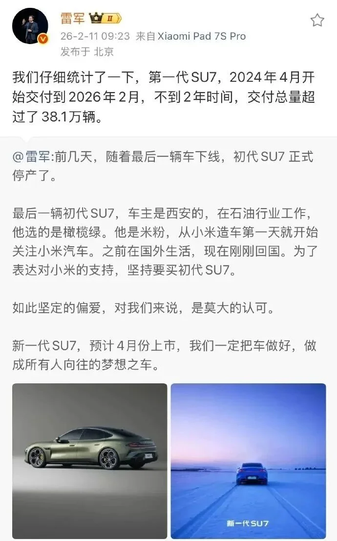 接下来的剧本,需要新的主角,承载新的技术(比如全域800V、更卷的智驾),去打新的战役。老将SU7,可以带着38万辆的战绩,体面地走进历史教科书了。