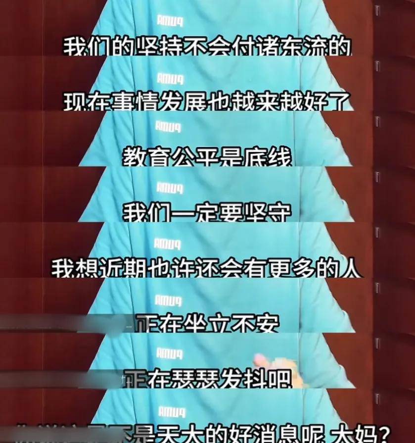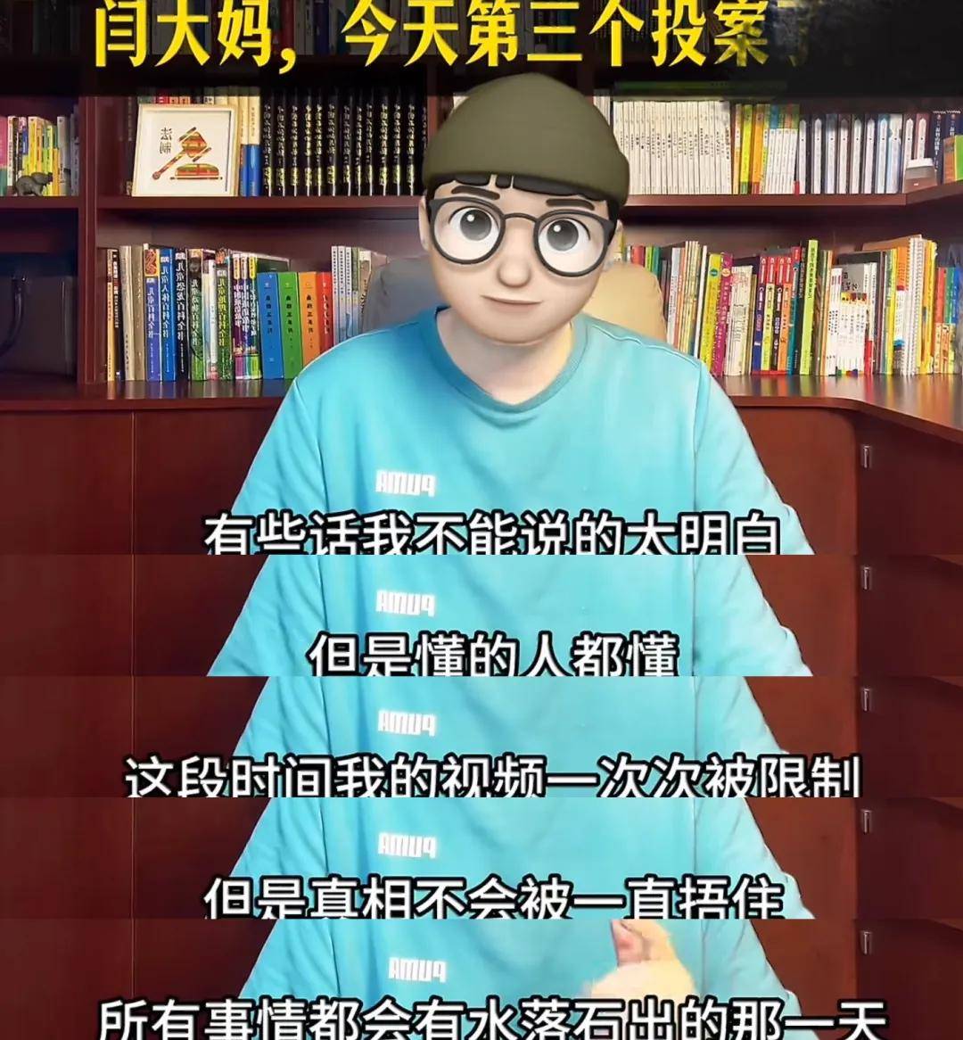 看到中戏连续三位表演系主任都自首了,曾实名举报闫学晶儿子违规入学的博主也发声了。他搭配了喜庆的背景音乐喊话闫学晶,让她看看三个主动自首的中戏领导,表示有些话自己不能说明白,但懂得都懂,并透露自己的视频遭到了各种限制捂嘴。