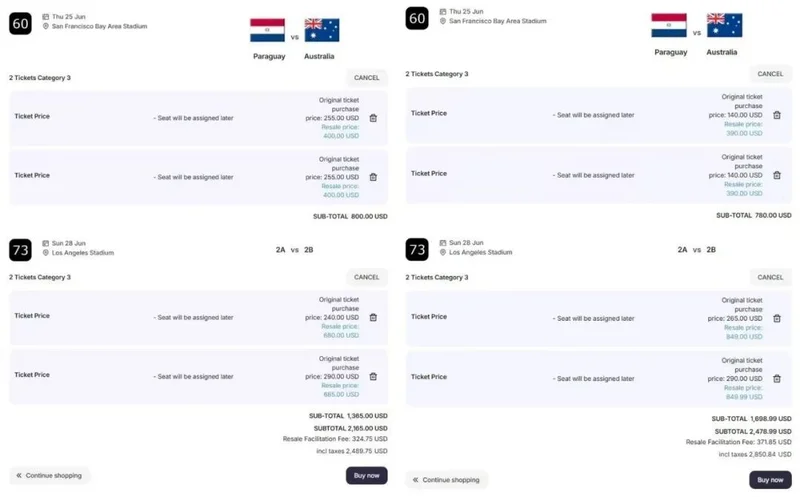 毋庸置疑,在海量的球票需求之下,二級市場的交易量也蔚為可觀。因此在官方售票渠道之外,在本屆世界杯,國際足聯還首度當起了“官方黃牛”:據悉,這個RESALE轉售平台和此前美國的StubHub、英國的VR Google等平台的盈利方式是一樣的。球迷買到票以後,如果需要轉售就需要到該平台上掛牌他的票,經過系統的審核,就可以正式地銷售,具體費用為收取買賣雙方15%的手續費。