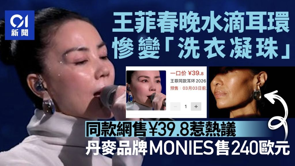周一(16日),着名歌手王菲第六度登上央视春晚舞台,演唱《你我经历的一刻》,惊艳全场。与此同时,她佩戴的一对透明水滴造型耳环迅速冲上社交平台热搜,被网民戏称「洗衣凝珠耳环」,引发网民疯狂讨论耳环造型、品牌与价格。