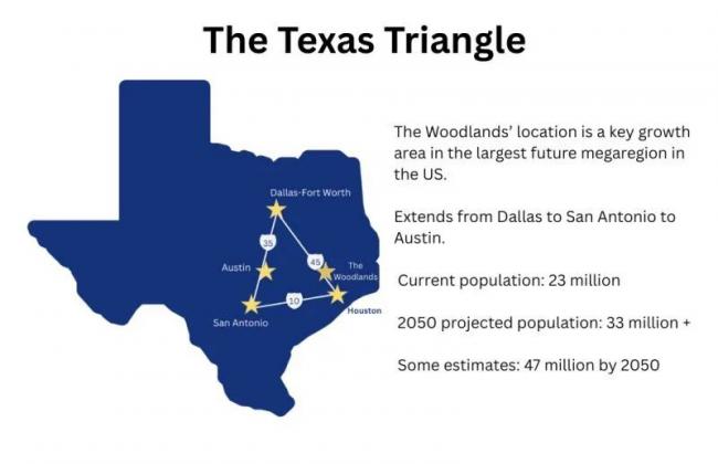 這是一個個由達拉斯-沃斯堡、休斯敦、聖安東尼奧以及“新硅谷”奧斯汀四大都市圈構成的巨大區域,被大膽地預測為“美國的深圳”。