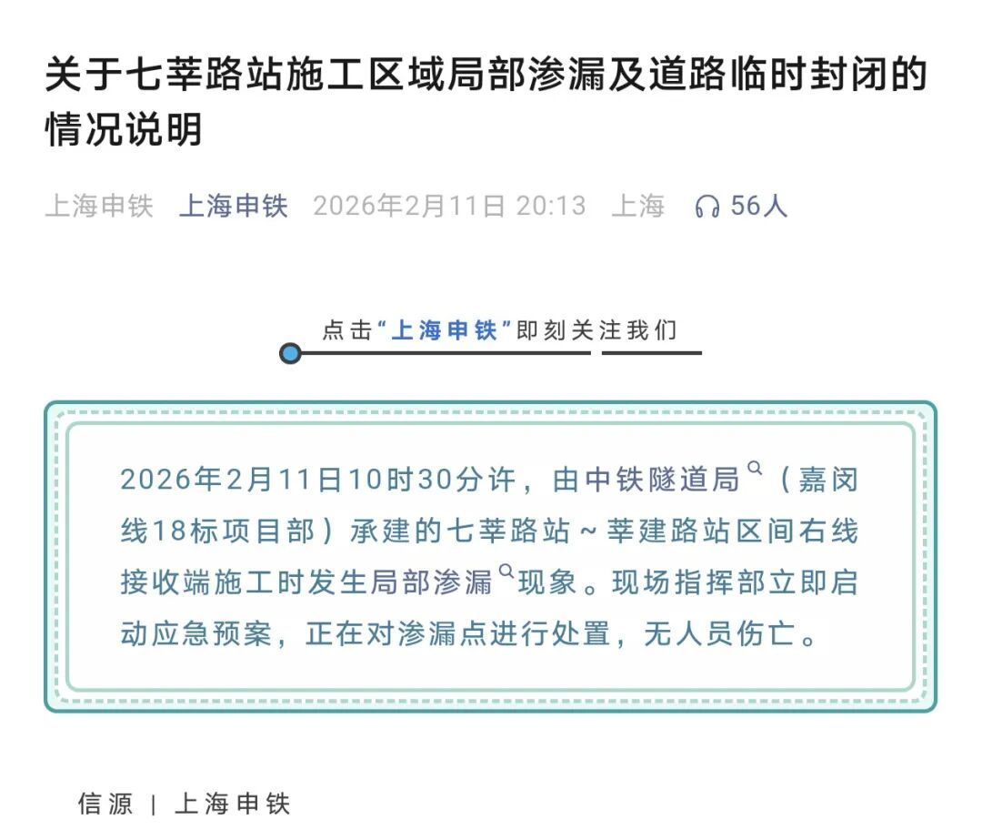 在2月12日的多家新聞媒體報道中,都看到了上海地鐵嘉閔線發生局部滲漏塌陷的新聞。當時准備過年了,再加上無人員傷亡,也就沒有太關心。