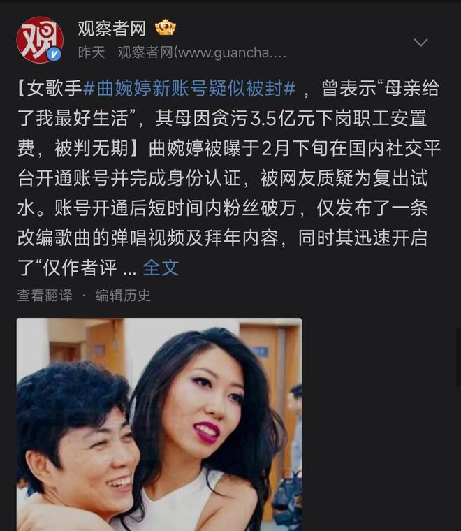 久未在国内公开露面的音乐人曲婉婷,在国内平台开通账号,引发全网热议。