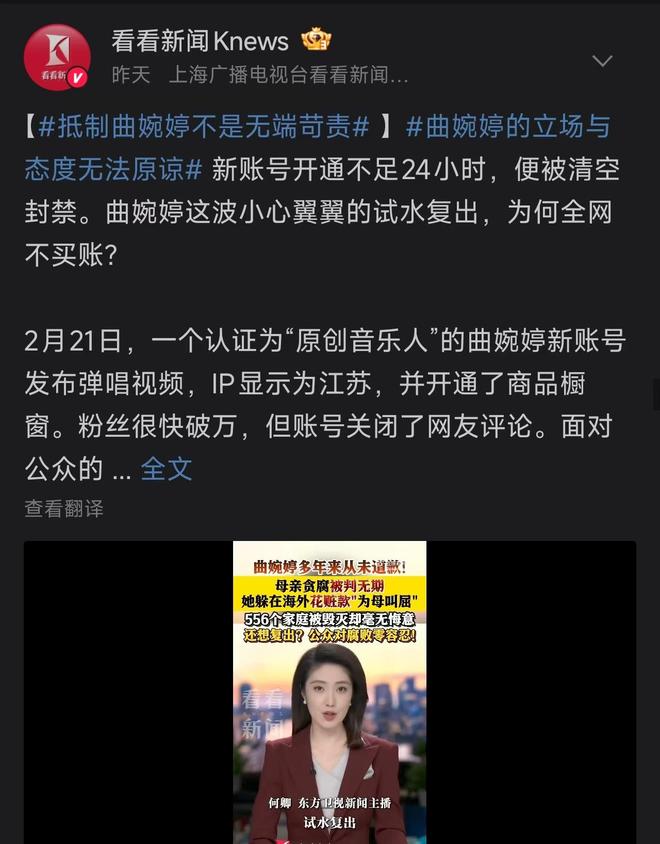在此之后,曲婉婷关闭了评论区,试图进行控评。