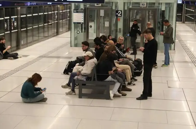 2月28日,人们在以色列特拉维夫一处地铁站躲避空袭(新华社发)