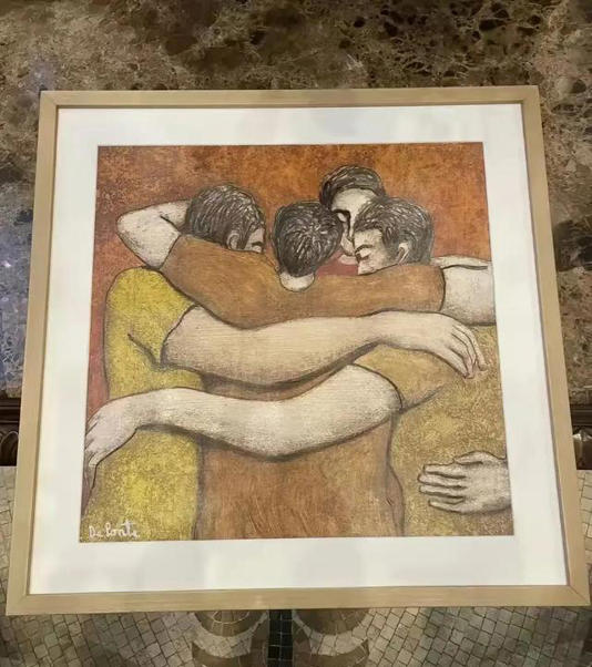 现在的明星豪宅,墙上不挂个几百万的名家字画似乎都拿不出手。但张一山家的大堂正中央,挂的竟然是一幅画风清奇的“定制油画”。画的内容不是山水花鸟,而是他和三个发小抱作一团的合影。