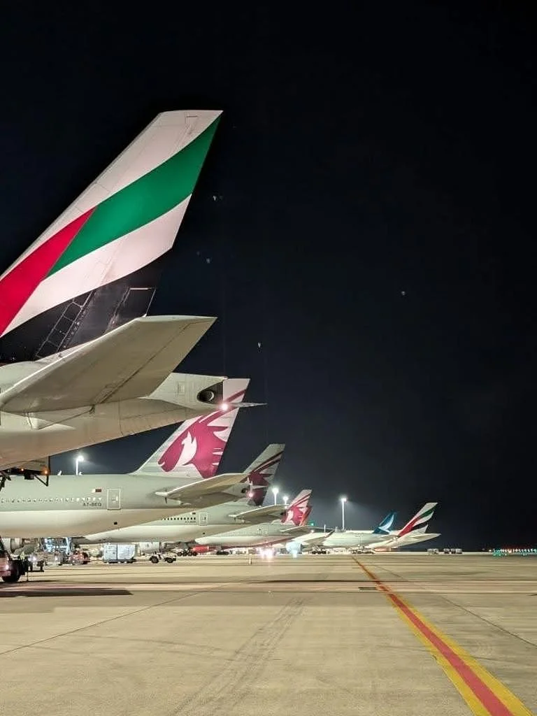 这一连锁反应导致包括卡塔尔航空(Qatar Airways)和阿提哈德航空(Etihad)在内的多家航司陷入停滞。两家公司均表示正在评估领空安全,并敦促拨打咨询电话的旅客保持耐心。