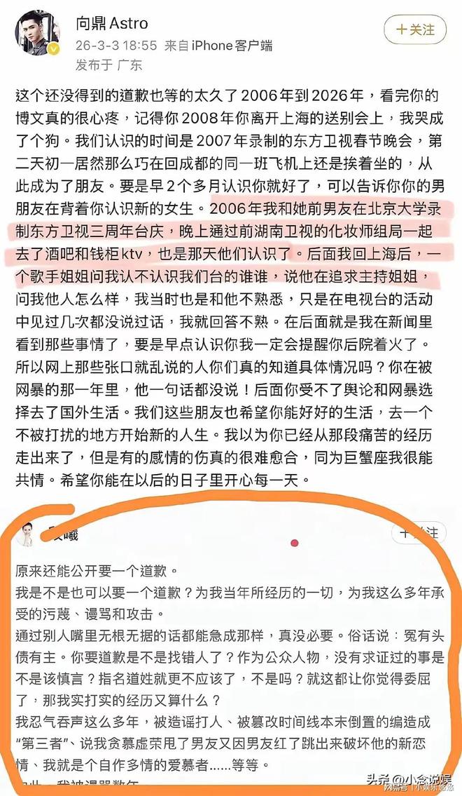 谁也没料到,谢娜一篇护夫长文掀起的风波,最先递出实锤的,不是当事人薛之谦,而是06届《加油!好男儿》的人气选手向鼎