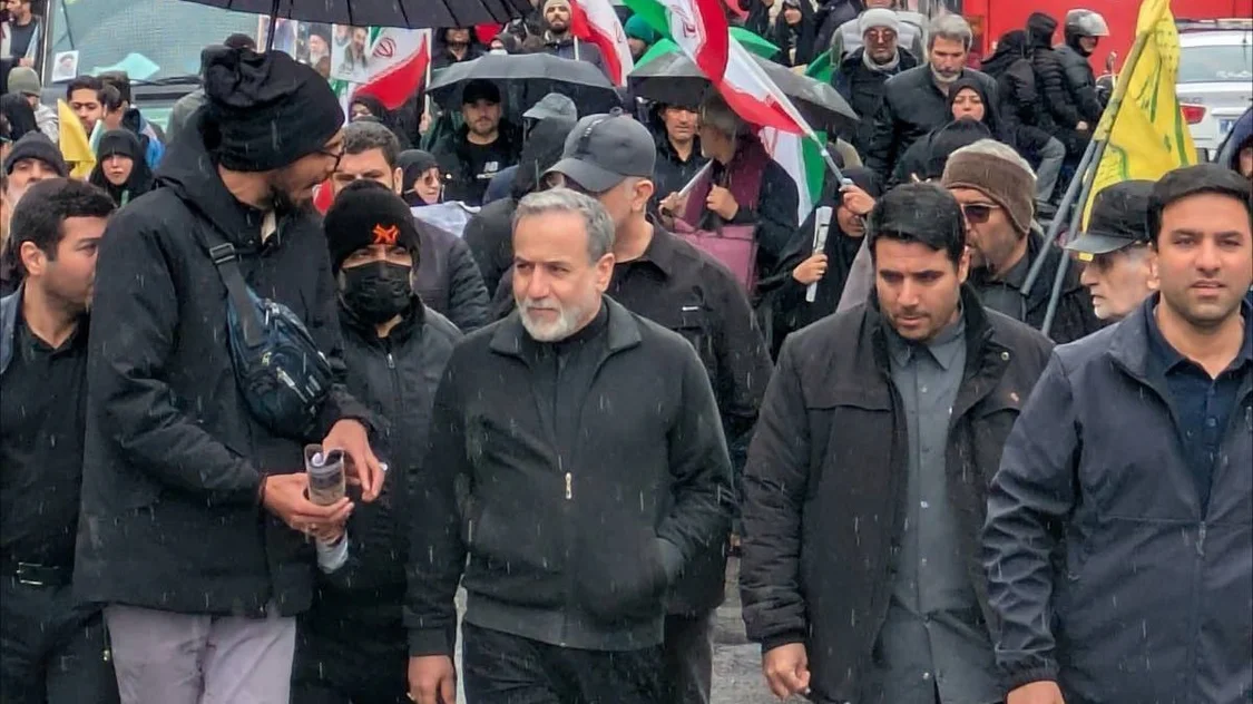 伊朗总统佩泽希齐扬走上街头,与大批民众一同参加集会游行。游行队伍声势浩大,民众高举旗帜、高呼口号,现场气氛热烈。
