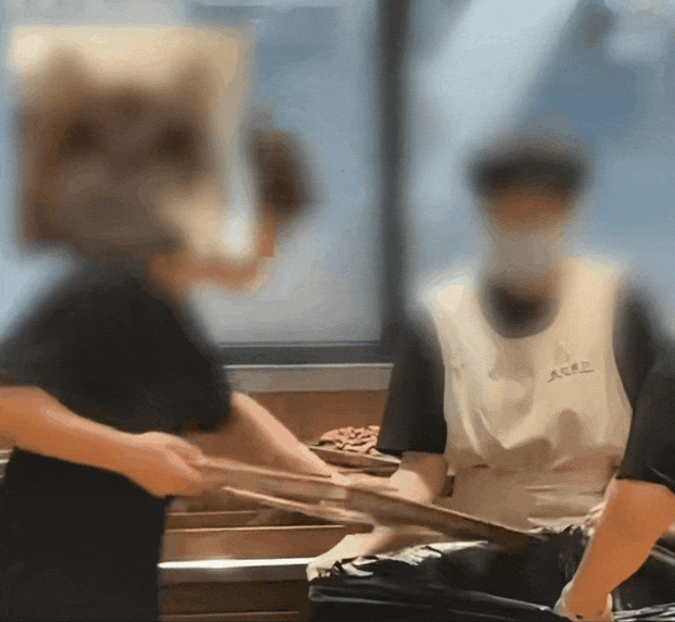 上海某網紅面包店在營業結束後,把好幾筐沒賣完的面包直接倒進了垃圾袋。