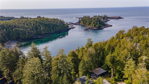 這家名為雨林海灘度假酒店 (The Rainforest Beach Lodge),位於BC省尤克盧利特 (Ucluelet) 中心地帶的特勒斯海灘 (Terrace Beach)。酒店坐擁壯麗的海景和雨林景觀。