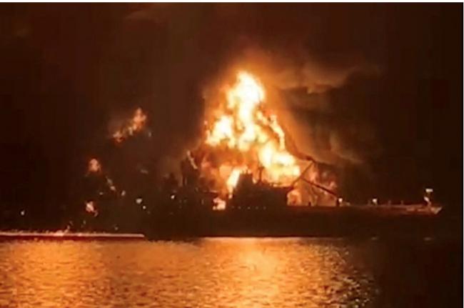 美国以色列2月28日突然对伊朗发动大规模空袭,伊朗严厉还击,中东战火延烧至今(24日)已25天。本月12日,两艘位于波斯湾北端伊拉克领海的油轮遭伊朗伊斯兰革命卫队(IRGC)攻击,暗夜火光冲天。伊朗半官方媒体法斯通讯社(Fars News Agency)当天释出现场画面后,今天又有现场画面流出,一艘小船靠近油轮后就发生大爆炸,掌镜者拍下执行攻击任务者振臂高举、比出胜利手势的画面。
