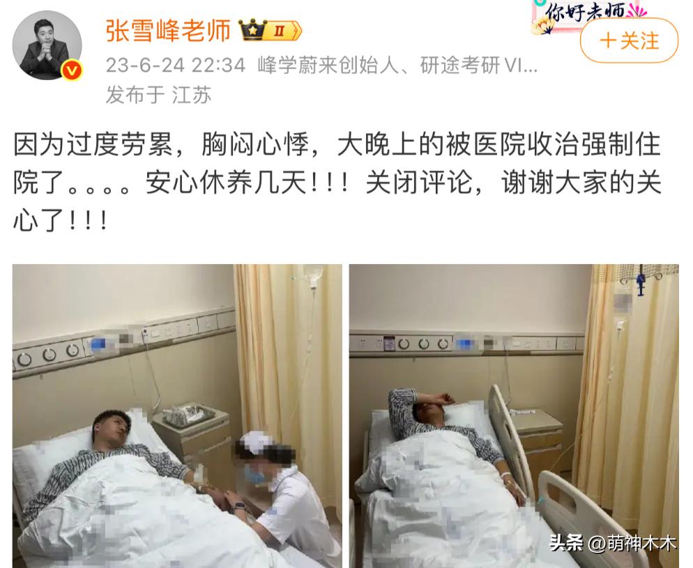 时间再往前数,2023年,张雪峰因为过度劳累胸闷心悸被强制住院,同年,有网友在评论区提醒他注意心脏问题。
