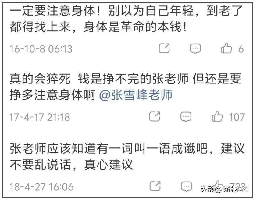 当时网友就一直劝张雪峰,注意身体,一辈子不长,话不要乱说。