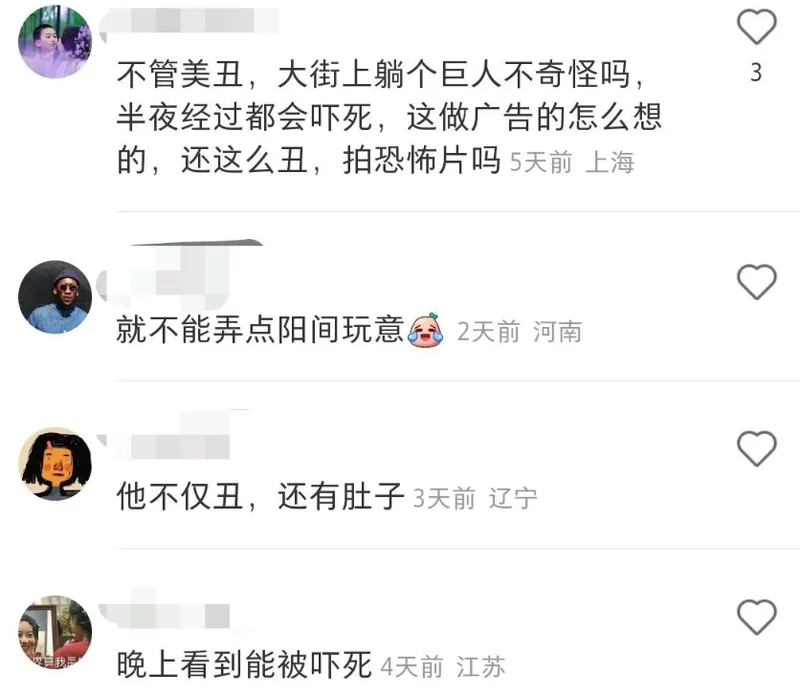 不少路人经过时被吓一跳,有人吐槽“这是什么东西,大半夜看到要做噩梦”,也有人觉得挺有意思,专门跑去打卡拍照。
