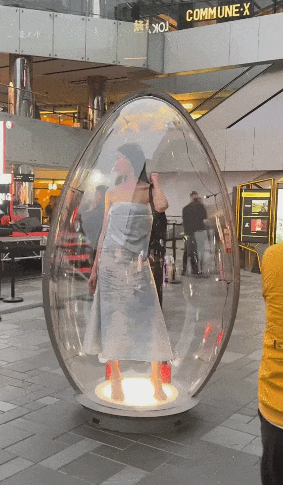 模特被困在密闭空间里,不能自由活动、没法正常交流,只能被动接受路人的凝视、拍照和指指点点,连基本的自主感都没有,谈何尊重?