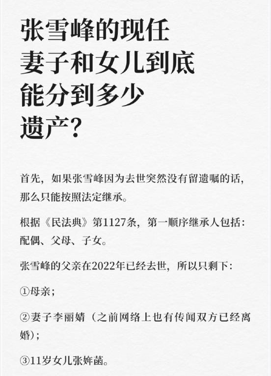 目前,大家仍旧对张雪峰留下的巨额遗产如何分配抱着十足的讨论。