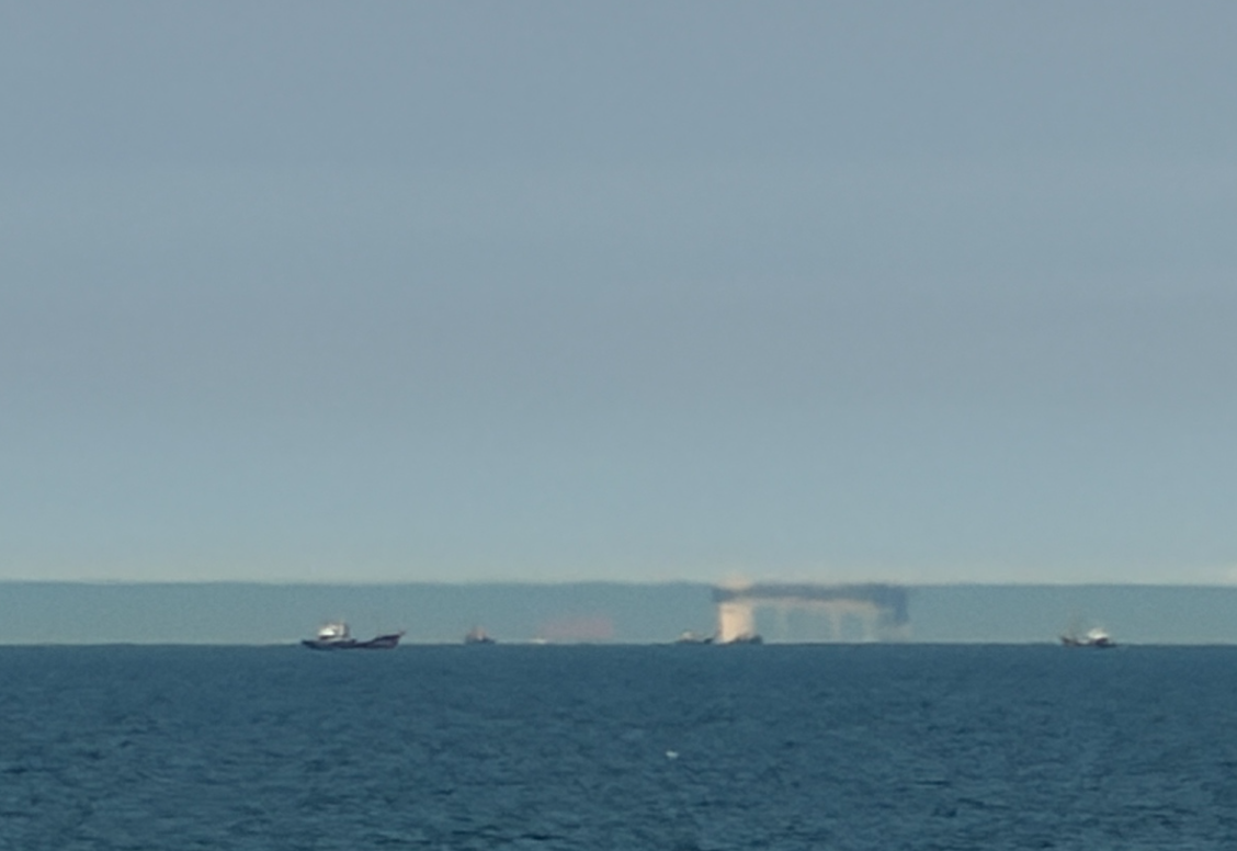 马先生表示,自己在当地生活逾30年,从未亲眼见过海市蜃楼,即使过去在电视上看过,也多为高低错落的建筑或山体,此次所见却呈现规则平整的带状形态,与天空与海面界线清楚,让他直呼难以置信。