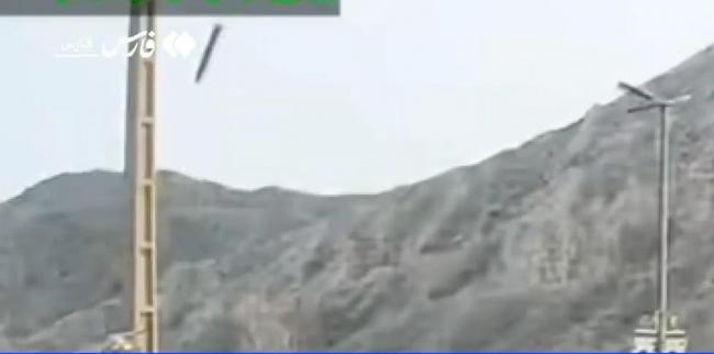 一段视频的截图显示,一枚导弹飞越伊朗南部城市拉默德上空(位于画面左上角),该导弹与PrSM特征相符。 Fars News Agency