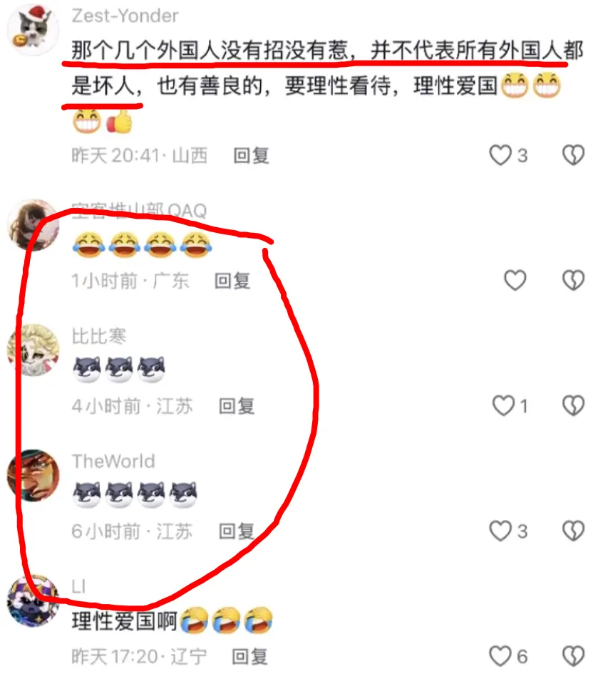 外国人里面也有好有坏,你直接把他们简化成一个统一的“敌人”标签,把他们抽象化,唯一的作用就是动员情绪,其他毫无任何意义。所以就算我站在这位母亲的立场上,我也绝对不会采取这种方式教育下一代,这太离谱了,这就是在蒙住孩子的眼睛,强行把你要喂给他的东西塞进他的脑子里。