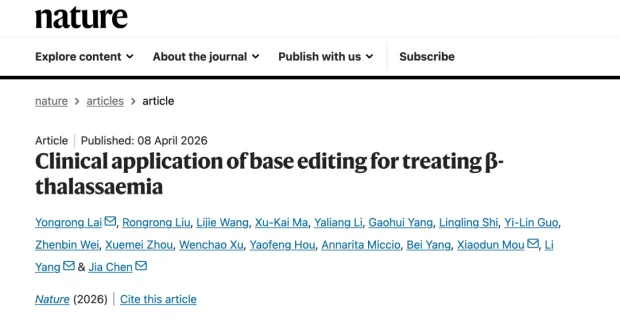 当地时间4月8日,顶刊《自然》发布“β-地中海贫血”碱基编辑疗法CS-101注射液临床试验结果,5名原本需要定期终身输血的患者,经治疗后彻底达到临床治愈,回归正常生活。