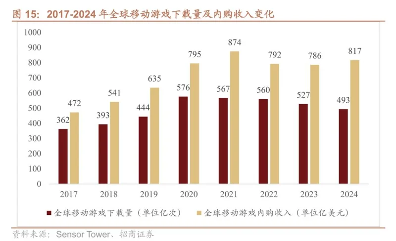 但一个让业内都意外的数据是,2024年,全球内购收入回升至817亿美元,接近历史高位。这种“下载规模收缩、收入端保持高位”的结构性分化,意味着增长的驱动力已由新增用户规模,转向对存量用户价值的持续挖掘。