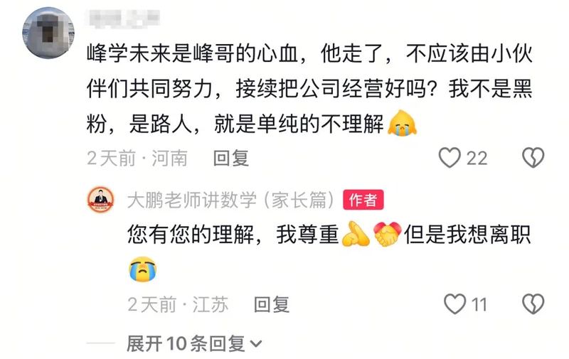 不久前,数学辅导老师大鹏在个人账号发视频宣布,自己已经正式从峰学未来离职。
