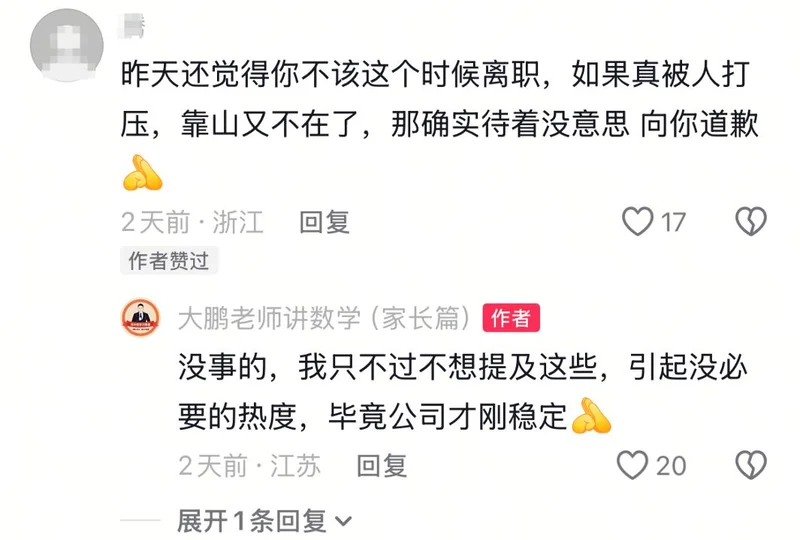 在回复其他留言时,大鹏老师又表露出了极为情绪化的一面。