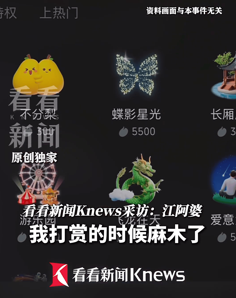 江阿婆喜欢看主播PK,怕自己支持的主播被罚,就一个接一个地刷“桃花岛”“城堡”,最贵的礼物一个就要3000块。