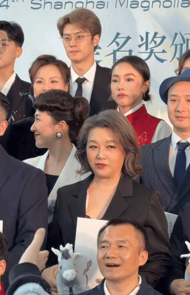 58歲江珊露面 150斤身材穿西裝腚大腰圓 但顯年輕