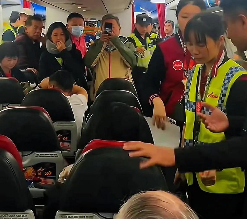 由於這名中國男子始終拒絕下機,嚴重耽誤航班運作,兩名馬來西亞航警只好采取強制措施,直接將這名中國男子從座位上架起,帶離機艙進行調查。