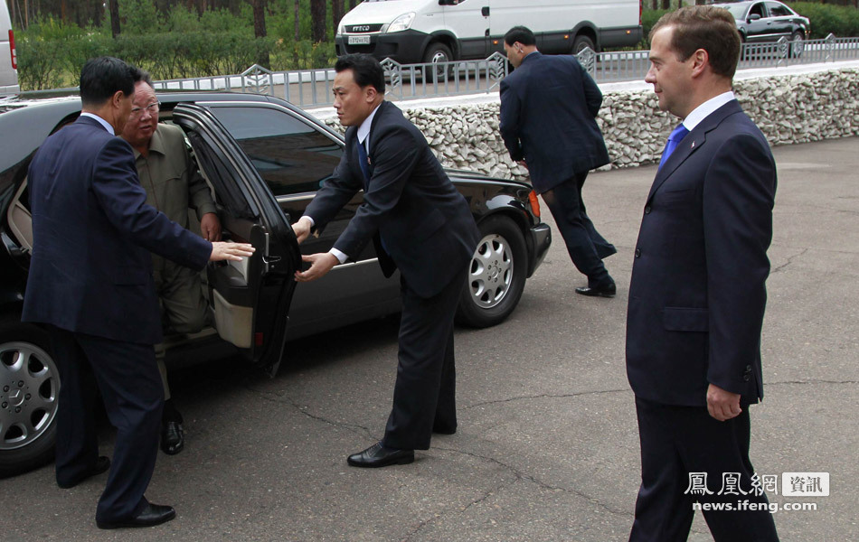 金正日去世: 实拍:金正日乘坐装甲奔驰车会见俄总统