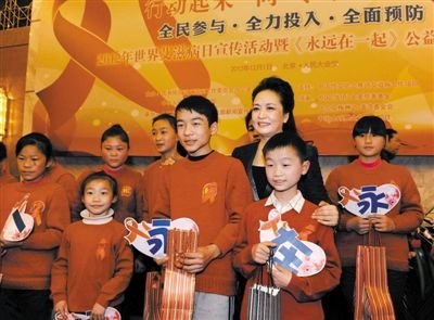 与艾滋病致孤儿童结缘,始于2006年初,43岁的彭丽媛欣然接受卫生部的邀请,成为一名预防艾滋病义务宣传员。她说:“这是一份最好的新年礼物。